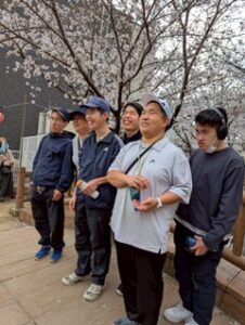 お花見が楽しみなのか、いつも以上にテンション高めの仲間たち。