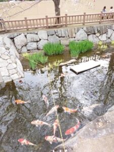 鹿の井出水までの道中では花壇のお花に枝垂れ桜、