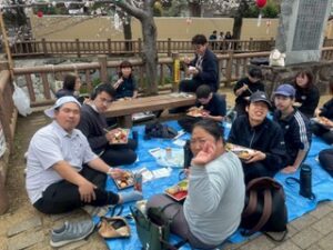 今回は野菜のスタッフも加わり、総勢14人でのお花見です。