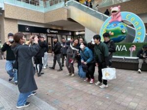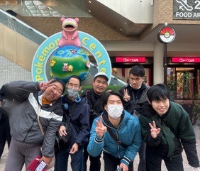 かわいいヤドンのオブジェの前で、みんなで記念撮影しました。