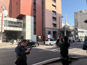 駅の出口をどちらから出るか相談して、いざ出発。