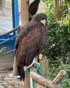猛禽類コーナーでは鷹に魅せられた大ちゃん。