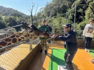 最後にしろとり動物園の大人気イベント「モモタイム」(キリンのエサやり)に参加し、
