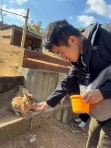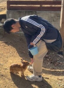 ウサギにニンジンをあげたときはカラダを撫でて「フワフワ」と言っていました。