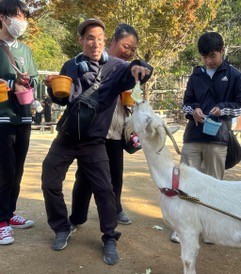 人馴れしているヤギは、自らエサを求めてみんなの方へグイグイ近づいて来ます。