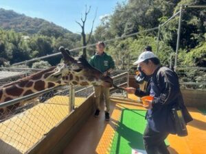最後にしろとり動物園の大人気イベント「モモタイム」(キリンのエサやり)に参加し、